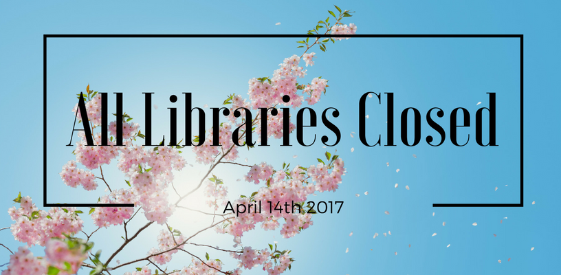 All Libraries closed Friday April 14th for observance of Good Friday