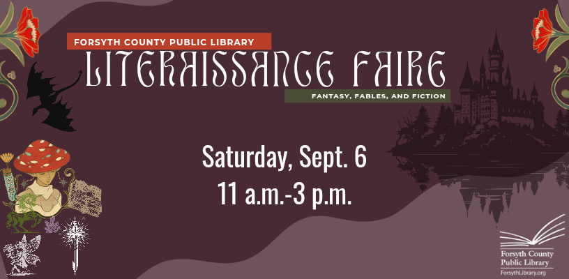 Huzzah and revelry! Join us for a literary-themed renaissance celebration of young adult fantasy fiction at Forsyth County Central Library on Saturday, Sept. 6 from 11 a.m.-3 p.m.